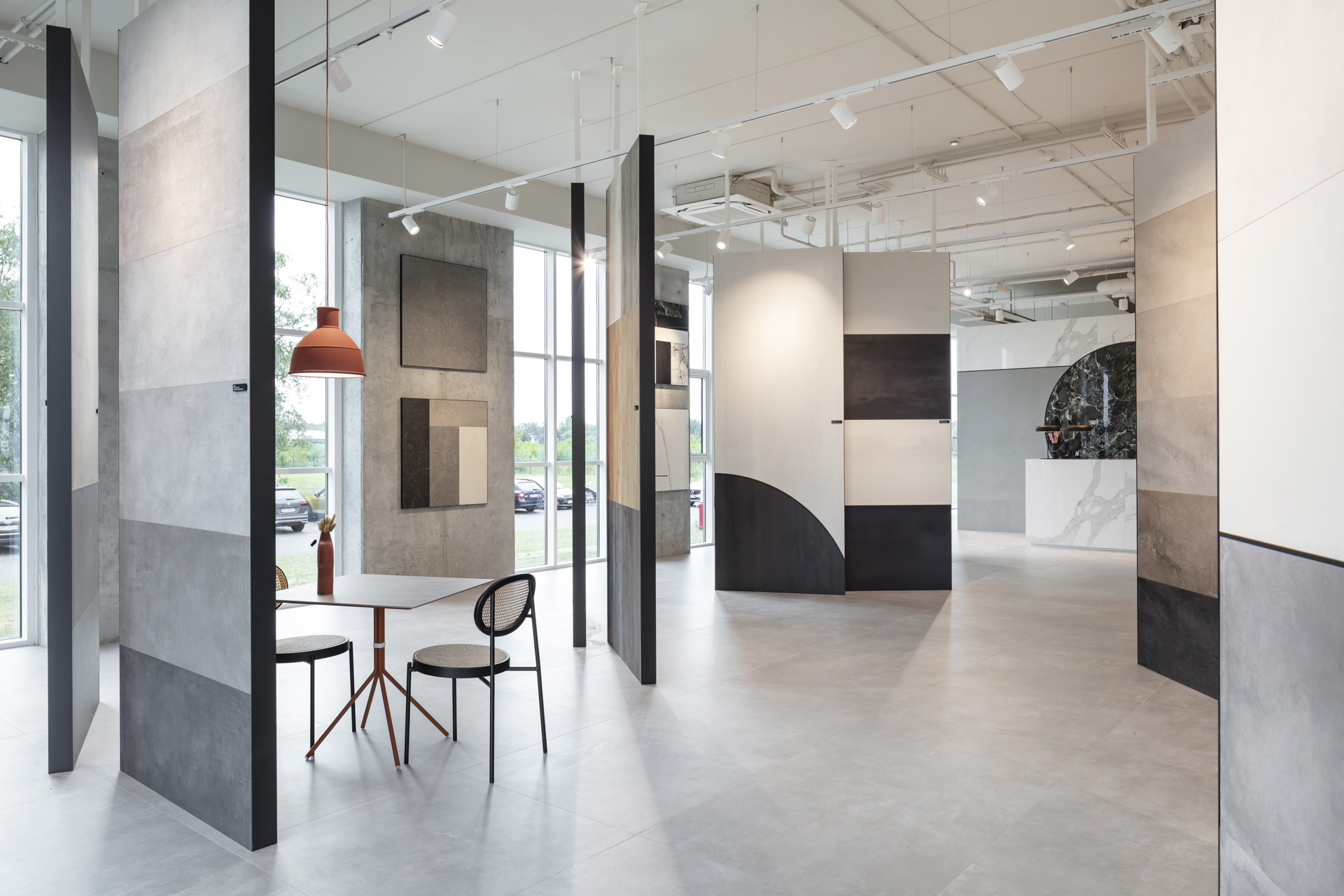 In the showroom located right next to the production site in Vetschau, authentic applications for our ceramic surfaces have been created with great attention to detail.