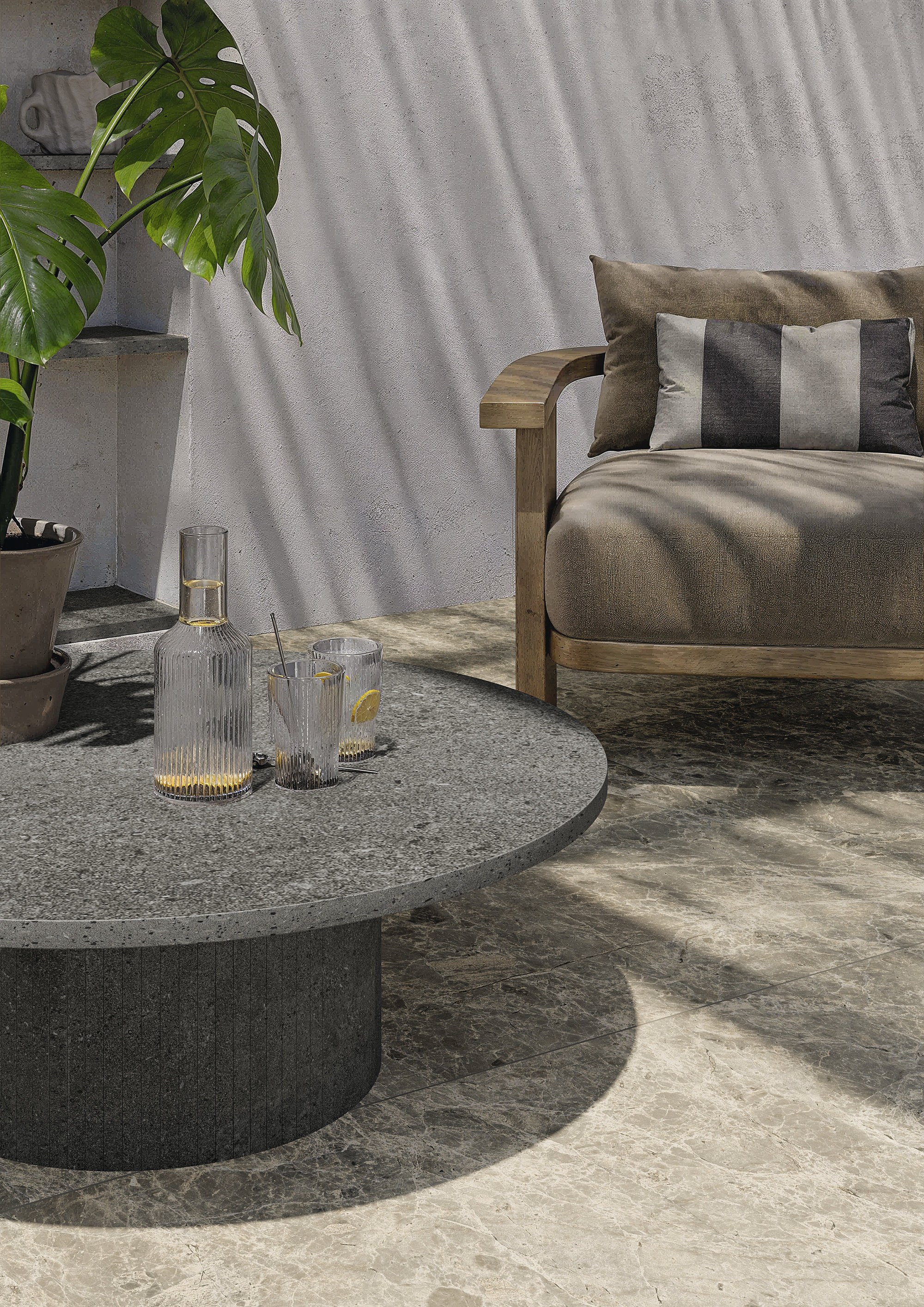 Thanks to a special porcelain stoneware manufacturing process, Full Body presents a chromatic homogeneity from the surface to the core. The result is a product with tangible depth and a more natural appearance, enhancing its material realism.