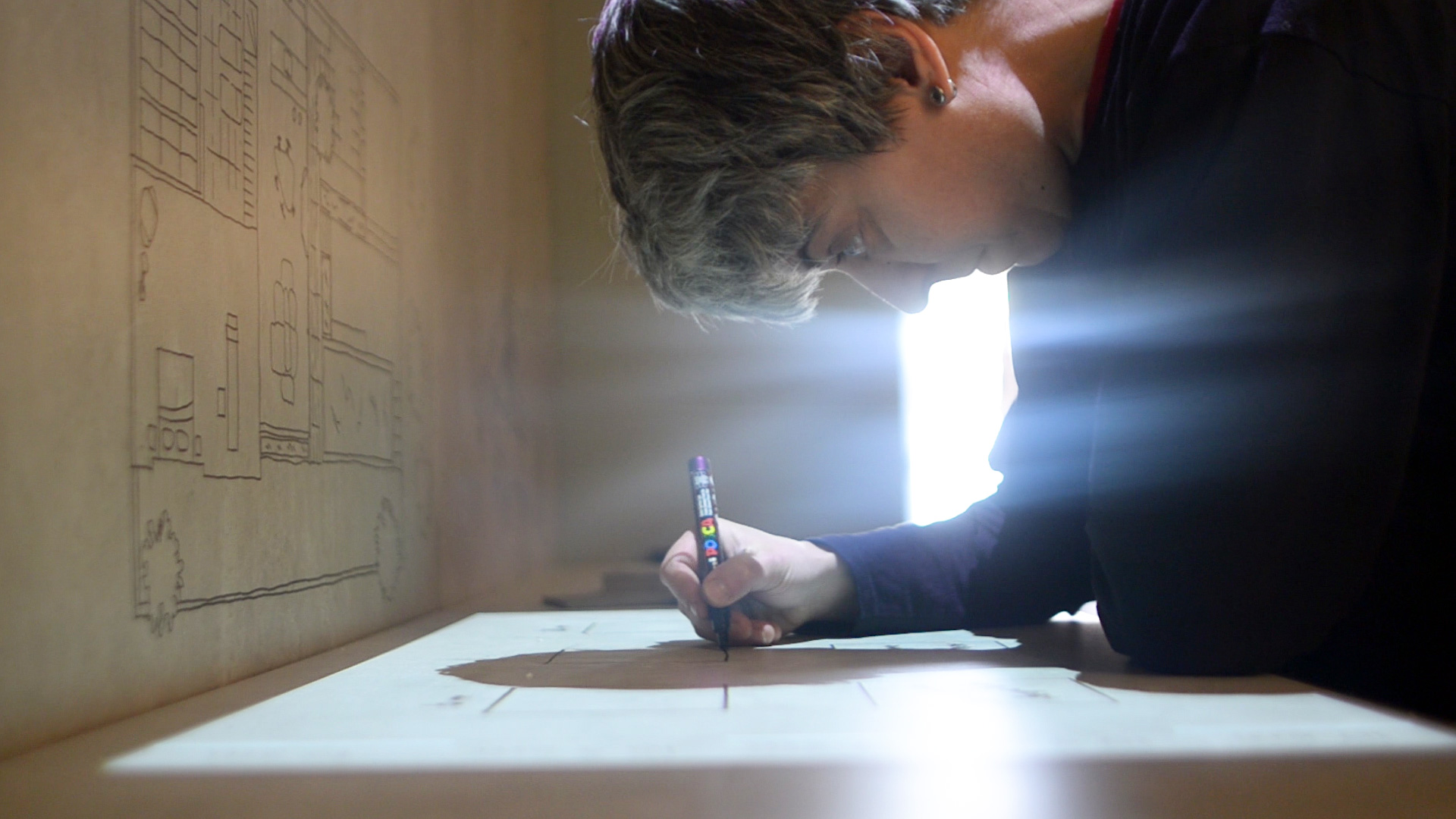 are associated with an elegant two-dimensional feature borrowed from the world of traditional animation for its clarity, simplicity and immediacy: surprise offered by the simplicity of the marks.