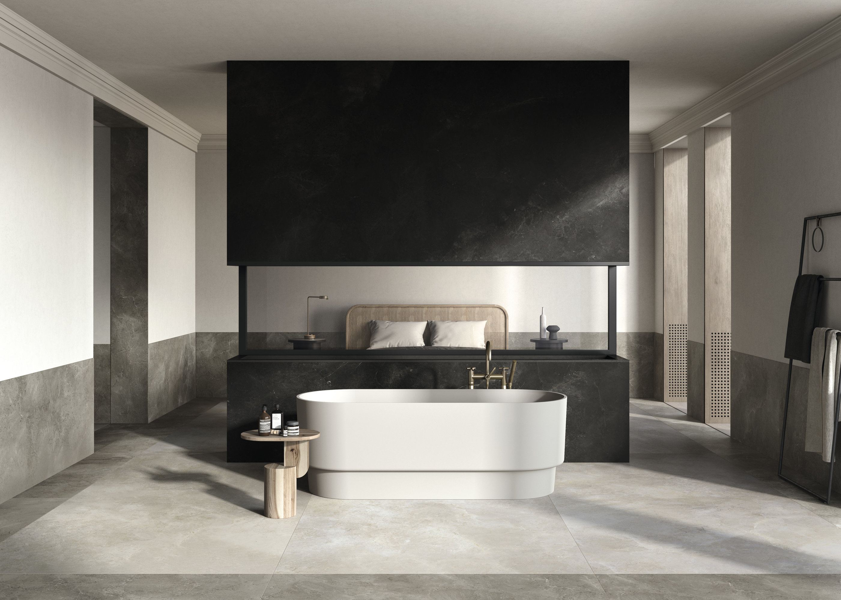 Inspired by the fusion of sophisticated marble and timeless stone, Great Royal Stone stands out for its versatility: a range of refined porcelain slabs with a vibrant urban flair, suitable for floor and wall coverings, as well as furnishing accessories.